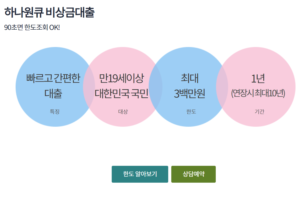 🟡하나은행 - 하나원큐 비상금 대출 ⫷ 바로가기