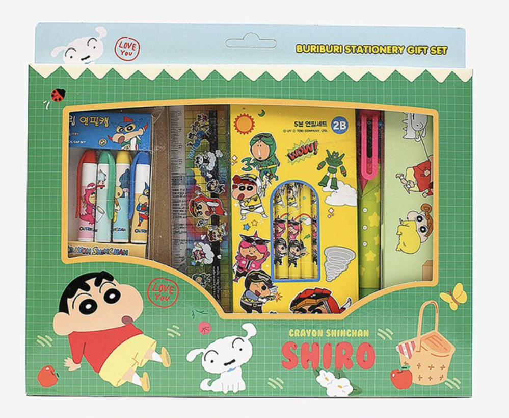 14. 짱구 부리부리 문구세트 : '짱구 부리부리 문구세트'는 만화 캐릭터 '짱구'가 프린팅된 문구용품 선물입니다. 필수 문구용품인 연필, 지우개, 가위, 풀 등이 포함되어 있으며, 자녀의 학습 동기와 흥미를 높여주고, 짱구의 유머와 사랑스러움을 느낄 수 있습니다.
