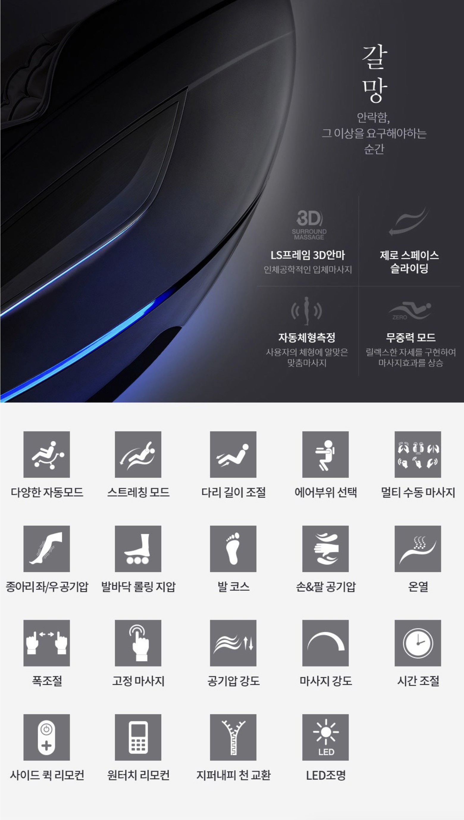 제스파 컴포르테 안마의자 zpc2033 기능들