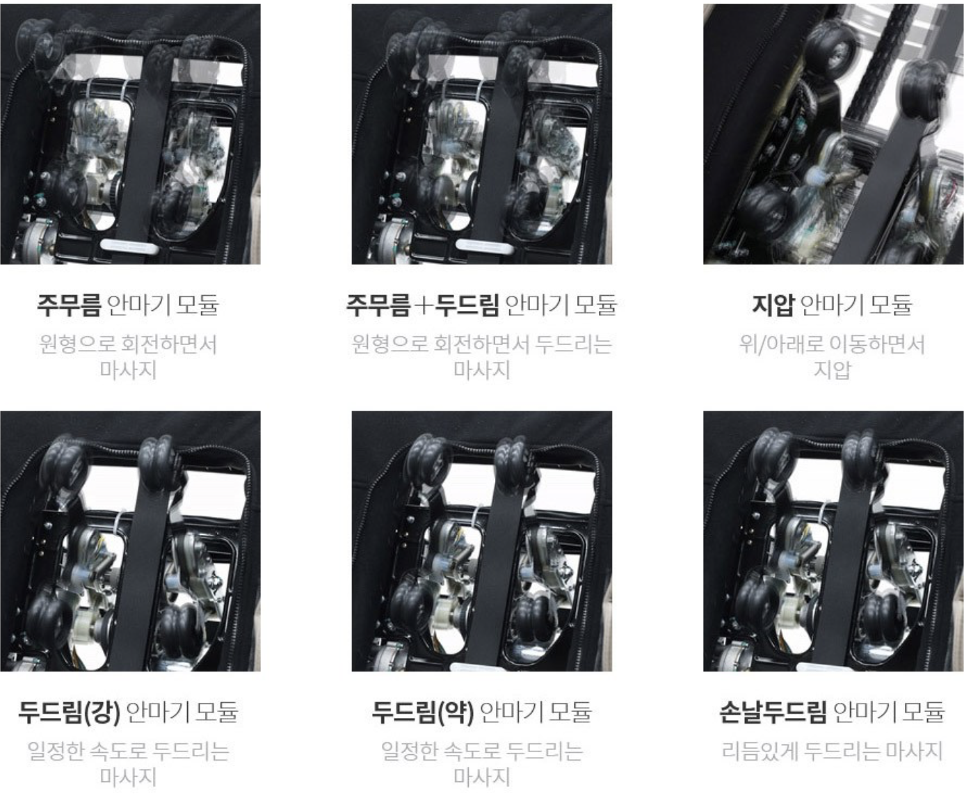 이 제품은 에어백으로 어깨, 팔, 종아리, 발을 지압하고 롤러로 발바닥을 자극해줍니다. 이렇게 다양한 지압과 자극을 통해 마사지 효과를 높이고, 사용자의 피로를 완벽하게 해소할 수 있습니다.