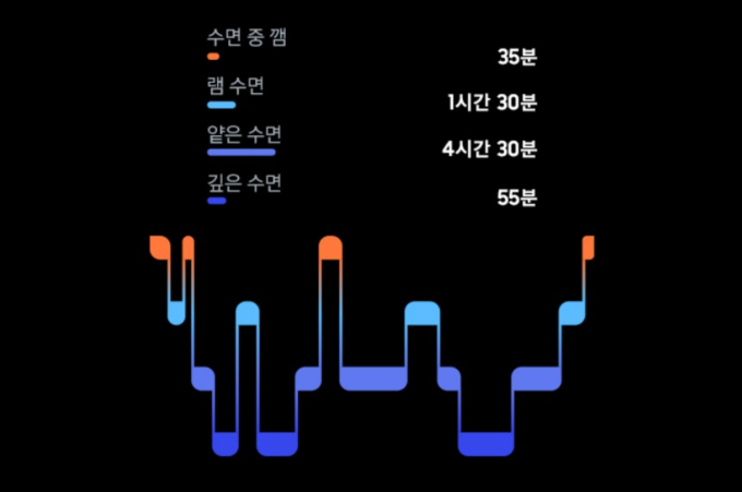 ‘갤럭시 워치6’는 수면 관리 기능이 개선되었습니다. 사용자는 수면 점수를 상단에 배치하여 직관적으로 볼 수 있으며, 매일 아침 자신의 수면 상태를 종합적으로 이해할 수 있습니다. 수면 점수는 총 수면 시간, 수면 주기, 깨어 있는 시간, 신체 및 정신 회복 등 5가지 요인을 각 항목별로 심층 분석하여 종합적으로 제공됩니다. 또한, 갤럭시 워치6에서는 갤럭시 스마트폰에서 제공되던 맞춤형 수면 코칭 프로그램이 손목에서도 사용할 수 있습니다. 사용자가 미리 설정한 수면모드 실행 시, 워치는 수면에 방해되지 않도록 디스플레이 밝기를 자동으로 낮추고, 하단 센서의 LED 녹색 불빛을 눈에 보이지 않는 적외선으로 전환합니다.